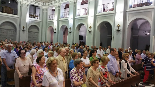 El lleno de "no hay billetes" fue impresionante al igual que las muestras de veneración de los fieles parroquianos a su páter Liquete desfilando en larga cola por la sacristía para besarle la mano y agradecerle su evangélica dedicación en la parroquia.
